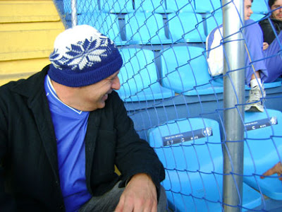 E POR ULTIMO, REVOLTADO, TENTOU SEM SUCESSO ALCANÇAR SUA REFERIDA CADEIRA, E ASSISTIU O JOGO SENTADO MESMO NAS ESCADAS DA RESSACADA.
